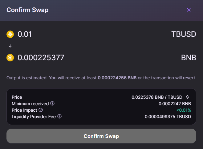Confirm your transaction. Your wallet will send you a confirmation request for the transaction. Once the confirmation process is complete, the swap will be executed automatically.